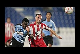 Frank Ribéry s'amuse en portant un joueur d'Al Wakrah sur le dos en plein match.