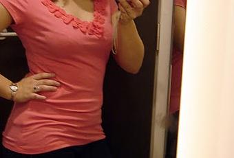 Lors de mon passage chez H&M, j'ai repéré un petit tee-shirt dont la couleur se situe entre le rose et le orange. Il est tout simple mais avec une pointe d'originalité : le col orné de petits nœuds... Et comme vous le savez, j'adore les nœuds!!! Il n'était pas cher, donc peu importe s'il est soldé ou pas.Ceci dit, j'ai hésité à l'acheter. C'est pourquoi votre avis m'intéresse...Car, étant en restrictions, j'ai décidé de ne pas acheter sur un coup de tête, même les choses les moins chères... J'ai donc réfléchi à la question, mais j'ai toujours pas réussi à trouver de réponse...Peut-être que cela veut dire qu'il ne faut pas que je le prenne... Si vous avez une interprétation...
