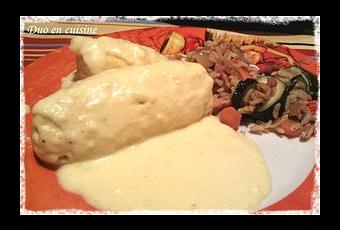 Commencer par faire une béchamel: faire fondre le beurre doucement, ajouter la farine, bien remuer, et verser peu à peu le lait (à feu doux), tout en continuant de remuer, jusqu'à épaississement. Ajouter les petits-suisses en mélangeant bien. Assaisonner et épicer avec le curry.