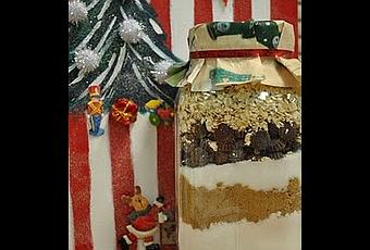 Fermer hermétiquement. Découper un cercle de 7 pouces dans du coton, attacher avec un ruban sur le couvercle et ajouter l`étiquette avec les intructions.