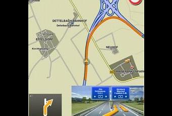 L’assistant de voies actif représente le tracé des routes, y compris les virages, sous la forme d’une animation dynamique simultanée ultra réaliste. Il vous indique de manière prévoyante et claire si vous devez changer de file avant la prochaine bifurcation et à quel moment.