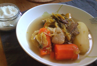 - 1,5 kg de bœuf ficelé (demandez à votre boucher. Si possible, demandez lui de vous donner un os à moelle voire 2, le bouillon n'en sera que meilleur!)
