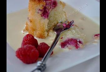 Une fois les gâteaux refroidis, disposer dans les assiettes puis versez la crème anglaise sur les côtés et parsemez de quelques framboises.