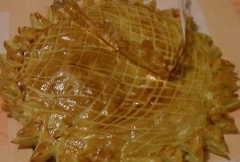 2 pâtes feuilletées125 g d'amandes de californie "moulue avec leur peau"125 g de sucre110 g de beurre mou2 oeuf + 1 jaune1 demi cuillère à café de farine2 fêvesTravailler le beurre mou avec le sucre jusqu'à un bon mélangeAjouter la poudre d'amndes, les 2 oeufs bien mélanger ajouter la demi cuillère à café de farine remélanger.Dérouler la pâte sur la plaque en conservant la feuille de papier sulfurisé, garnissez le centre avec le mélange bien étaler uniformément, déposer les fêves.