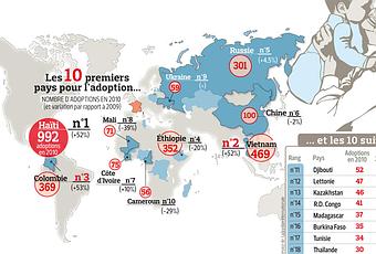 - Le Figaro fait un bilan sur les "chiffres" de l'adoption 2010 : "Les adoptions internationales en hausse de 14 % en France" Assez synthétique et correct. J'y vois que l'Inde n'est plus dans le top twenty, bon bin ça sera pour une autre fois ! Menfin vivement que les stats officielles du SAI soient publiques, que l'on puisse confirmer celles de cet article.- La présidente du CSA parle dans l'express des doutes autour de la faisabilité de la suppression de l'adoption individuelle : "Supprimer l'adoption individuelle ne fait pas l'unanimité"