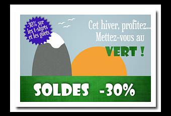 Et bien voilà la période des soldes et à cette occasion, nous vous proposons quelques ristournes dans la boutique du petit renne, notamment sur la gamme RePense ! Pendant cette période, les gilets Green Mécanique sont proposés à 35 euros au lieu de 49 euros et les tee shirts Le Cri du Renne, Pas Automatique et Esprit Nordique à 16 euros au lieu de 23 euros. Nous vous rappelons que tous nos vêtements sont en coton biologique et issu du commerce équitable.