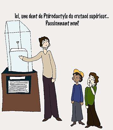 Un grand merci à Marion Lanceau qui signe le 4e billet de la rubrique "Musée-Oh! Bulles". C'est avec humour et ironie que la jeune graphiste aborde la question de la médiation muséale auprès du jeune public, une mission à mener avec intelligence et ouverture d'esprit. Visites et signalétiques adaptées, ateliers, parcours-jeu et autres malettes pédagogiques, sont autant de prestations proposées aujourd'hui par le service des publics des musées, pour éviter ce rapport direct et frontal qui laisse nos jeunes visiteurs parfois dubitatifs face à cette superbe "dent de ptérodactyle du crétacé supérieur"...