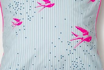 Au menu, on retrouve toujours du rose fluo, des contrastes, des dessins romantiques et des références girly. Chaque vêtement ou coussin dessiné par Anne Hubert est évidemment à croquer.