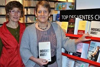 « Cela fait deux fois que nous sommes en rupture de stock. A Noël, on n'a pas pu en vendre : il n'y en avait plus. Là, on en avait, on en a vendu 400 en quatre jours. On vient d'en recommander 1 000. » Vendeuses, Joëlle et Monique témoignent du succès de l'ouvrage. « Les clients sont attirés par le titre très fort et la personnalité de l'auteur. Ce ne sont pas des ados qui achètent le livre, plutôt des personnes âgées qui les prennent par pile entière pour offrir à leurs proches. Maintenant, Hessel est reçu partout sur les radios, à la télé. Il n'y a pas une semaine sans qu'on le voie. Il force finalement les gens à venir dans les librairies et ça, c'est plutôt une bonne chose. »