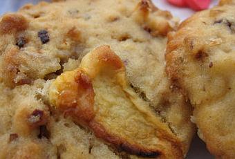 Ceux-ci se composent de petits dés de pomme, de compote de pomme et de pralin...Si vous avez un faible pour les cookies moelleux, ils sont pour vous...Le pralin donnera néanmoins un petit côté croustillant à l'intérieur, très sympa !