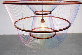 Elle monte, elle descend, la lampe de la semaine, au rythme de la lumière, comme aurait pu dire DeBarge. Composé de 5 anneaux concentriques reliés par des fils de couleur, le luminaire prend des formes variés au fil du temps, c’est le cas de le dire… Le plus : l’ampleur de l’objet, la présence des volumes (la configuration déployé est assez impressionnante dans son évidence). Le moins : le traitement de la lumière. Entre « Het ritme van licht » (son titre original sur le site de Susanne de Graef) et une ampoule nue, c’est juste une différence d’encombrement et de relations publiques, diront les esprits chagrins.