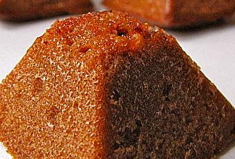 - Répartir dans des empreintes pyramidales (ou celles de votre choix) en ayant répartie aupavaravant au fond de chaque empreinte quelques miettes de pralin.