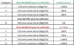 BONUS / MALUS des vehicules neufs pour le CO2 :