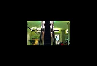 cette femme en à fait la triste expérience, absorbée par l'envoie de sms avec son gsm, elle ne voit pas la fontaine dans un centre commercial...