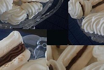 Oui mais il y a un moment où il faut les liquider, n'ayant pas le temps de me lancer dans la "folle aventure" des macarons (un grand bonheur cependant....et tellemen CHICS !) j'ai opté pour des meringues toutes simples et une déclinaison encore plus gourmande, garnie de ganache au chooclat : des baisers.....