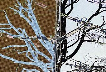 il y a des moments où l'on peut décrocher du microcosme. S'oxygéner. Pas très loin de chee nous il y a la petite forêt domaniale de la Région à Boissy Saint-Léger non loin, du château et du petit marché. D'une pierre deux coup: je me suis abandonné aux courses et à la ballade en forêt, presque désertée, sous un beau soleil. A mon retour, j'ai voulu traduire mon émotion, mon impression de cette nature télescopée avec l'acheminement de l'électricité vers nos centres urbains densifiés... j'en ai donc réalisé cette petite synthèse entre poylones et parure hivernale d'arbre. Choc frontal entre nature et industrialisation. Ce fut donc un week-end de détente loin de toutes les rumeurs qui rongent la ville au sujet d'un départ anticipé du Maire à mi-mandat. Je vais interroger le BM à ce sujet ce soir car il n'y a rien de plus désagréable et pertubant que la focalisation sur ce type de sujet et des analyses et extrapolations faites sur la variation de profondeur des prises de thermomètre d'un malade en puissance - presque anéanti même aux dires convulsifs de certains... Toute la panoplie est présente au grand bal des auscultations et Hypocrate y perd sa morale.