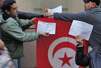 A Genève, la résistance s’organise pour empêcher les familles Trabelsi et Ben Ali de partir avec les fonds déposés dans les banques suisses. Ce matin, six militants tunisiens ont investi la banque privée HSBC Rue du Rhône où ils ont vu entrer Sofiane Ben Ali, neveu de l’ex-président tunisien. Ils n’ont rien pu faire. Mais leur intervention n’est pas passée inaperçue puisque la Télévision et la Radio Suisse Romande ont couvert leur action. L’après-midi vers 16h00 une vingtaine de tunisiens se sont rassemblés devant la banque HSBC rive gauche pour une manifestation improvisée demandant à l’établissement bancaire de "rendre" l’argent du peuple tunisien. Une dizaine de minutes plus tard la police est venue et a dispersé dans le calme les militants tunisiens.