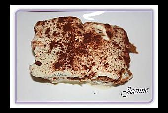 Etalez la crème sur les biscuits et alternez biscuits et crème jusqu’à épuisement terminer par une couche de crème.