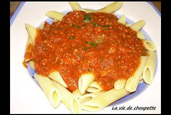 J'ai servi cette sauce bolognaise avec des Pennes Rigate.