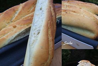 Fariner le plan de travail et y déposer la boule de pâte Aplatissez - la avec la paume de la mainDiviser la pâte en trois ou quatre morceaux puis faites une boule avec chaque paton que vous aplatirer en rectangle à l'aide de la paume de main Plier la pâte en deux en repliant les deux bords Donner la forme d'une baguette en faisant rouler la pâte sur le plan de travail pour l'allonger Faire de même pour chaque boule Placer les baguettes dans les moules prévus à cet effet ; Couvrer d'un torchon puis laisser reposer à température tiède pendant 1 heure Inciser les baguettes avec une lame de couteau Vaporiser un peu d'eau sur les baguettes pour les humidifier Enfourner four préchauffé à 220 ° pour une cuisson de 20 mn "env"