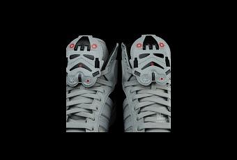 La paire est inspirée des Storm Troopers, soldats de l’Empire galactique dans la saga Star Wars, dont la tête, attachée en velcro sur la languette, est détachable.
