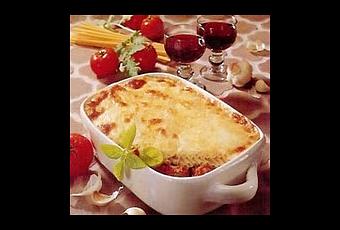 - Frotter un plat à four avec l'ail. Le beurrer. Répartir la préparation précédente sur le fond du plat. Saupoudrer de basilic et étaler les macaronis par-dessus. Saupoudrer de parmesan.