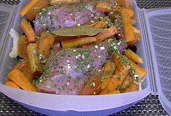 Mettre dans le plat à papillote les cuisses de lapin ,les légumes ,le persil ,la feuille de laurier saler et poivrer.