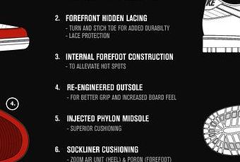 Lacets protégés contre les flips gachette, nouvelle semelle Phylonnisé, talon protégé...