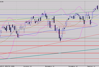 Après le franchissement de la résistance des 3977 points, en fin de semaine dernière, le CAC a logiquement poursuivi sa progression au delà des 4000 points.Aujourd'hui apparaît une figure baissière sous forme d'avalement baissier.Un repli correctif est donc en place; et même si nous clôturons la séance sur la résistance devenue support, le repli devrait se poursuivre.Nous allons donc surveiller la force de ce repli ou plus exactement la réaction des acheteurs, notamment au dessus (ou à partir) du support des 3915 points.C'est vraisemblablement entre les 3915 points et les 3945 points qu’un rebond aura lieu et permettra au CAC de garder son profil positif.