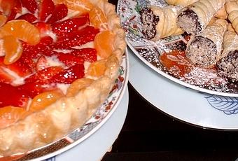 Salut les ami(e)s toujours avec de la pâte feuilleté voilà des cornet amande chocolat et tarte fraise et mandarine avec de la crème pâtissière