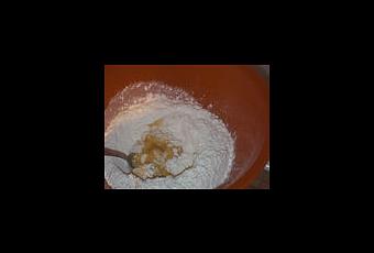 Dans un saladier, verser la farine et les oeufs. Puis progressivement ajoutez le lait tout en mélangeant.