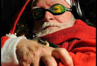 Pour le concours, j’ai demandé la participation de mon grand-père ; ça m’a paru amusant, vu l’époque, d’explorer l’image du Père Noël. Il s’est prêté au jeu avec beaucoup d’enthousiasme, c’était un Père Noël effrayant. J’ai retenu ce cliché pour le contraste de l’âge, du personnage mythique, et l’attitude façon « rappeur » dont le regard peu amène défie le spectateur, qui me semblait coller le mieux au thème.