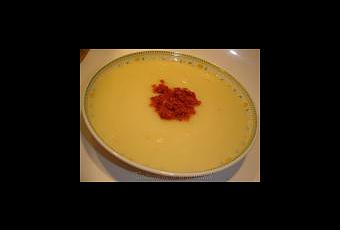Entrée Velouté de chou-fleur au chorizo et parmesan