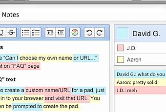 Les options sont plutôt basiques (gras, italic, souligné, barré, ajustement et couleur, … ). Il est possible de revenir en arrière via les boutons retour/suivant et via un système de frise chronologique appelé « Time Slider« . D’un simple clic sur « Share This Pad« , le texte est partagé avec vos collaborateurs et accessible sans inscription.