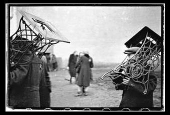 Le visiteur découvre ensuite de curieuses scènes quotidiennes, une mère embrassant son enfant, un couple d’amoureux surpris derrière un buisson. Si elles ne faisaient pas partie de l’exposition, on n’imaginerait pas leur provenance, tant elles semblent appartenir à la « normalité » et non à ce mouroir à ciel ouvert. Pas plus que cette autre prise de vue où trois jeunes hommes se jouent de la perspective devant le photographe, l’un semblant porter les deux autres au creux de ses mains. On remarque encore un étrange épouvantail installé dans les jardins de l’hôpital, qui ressemblerait assez à Roudoudou, le personnage qu’avait construit Antonin Artaud à l’asile de Rodez, si la veste qui le recouvrait ne portait pas l’étoile jaune.