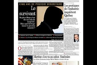 Un court billet, pour attirer votre attention sur un excellent dossier du journal Le Devoir du weekend. Ce dossier, qui se penche sur les cinq ans de gouvernance conservatrice à Ottawa, fait une sorte d'État du Canada après ces cinq ans en explorant divers aspects des politiques fédérales; économie, gouvernance, relations internationales, culture, etc. Pour avoir un survol de ce dossier et de ces cinq années, l'article Un autre Canada est assez révélateur. Quelques autres articles sont aussi disponibles en ligne: De responsabilité à opacité, De la frugalité aux abondantes dépenses, Le "cancre" des changements climatiques. Chaque journaliste éclaire avec justesse la différence entre le discours conservateur et les faits et gestes politiques posés par le gouvernement. On peut aussi tirer de ce dossier une conclusion plus dramatique: en modifiant autant les politiques fédérales (notamment en éliminant des programmes et des sources de revenus par des baisses d'impôts corporatifs), le gouvernement Harper rend très ardu un éventuel retour au centre par un gouvernement ultérieur, et ça, c'est inquiétant. Ayant longuement écrit sur l'état de notre pays en décembre dernier, je ne pouvais passer à côté d'un tel dossier. Si mes billets sur la chose vous ont intéressé, ce dossier du Devoir est pour vous.--