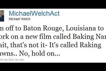 Traduction : "Je pars pour Bâton Rouge, en Louisiane, pour travaillersur un nouveau film nommé Baking Nan... Attendez, ce n'est pas ça.Il s'appelle Ranking Lawns... Non, attendez..."
