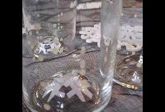 Tes une vraie fifille? Alors tu as du vernis à ongles de toutes les couleurs qui commencent à sécher inéxorablement dans leurs petits flacons? C'est le moment de les sortir... On nettoie bien les verres, on les sèche bien (jusque là ça va?), on fait des pois à main levée, on pose des lignes en Scotch et on vernis entre.... rien de bien sorcier mais l'effet est là, on peut jouer avec les couleurs, y ajouter des rubans.... le vernis reste sur le verre sans passage au lave-vaisselle, si on veut l'enlever... au lave vaisselle (plusieurs passages sont nécessaires) ou avec du dissolvant et du coton. Élémentaire mon cher Watson!
