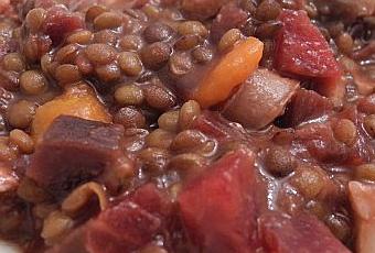 Enfin un reste de lentilles aux saucisses, que j'avais fait hier midi, et pour ne pas transformer ce reste en soupe, comme d'habitude, je me suis dit que des betteraves et ce petit goût terreux, ce serait parfait, et ça l'est, au point que je me demande si le prochain petit salé aux lentilles, je ne vais pas le faire directement avec ces légumes à la couleur fabuleuse...