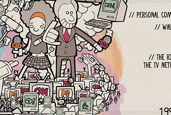 Des peintures murales aux pigeons voyageurs, en passant par la radio, la télévision, les journaux ou encore Internet, cette infographie retrace, sous la forme d’une fresque originale et sympathique, l’histoire du contenu de la préhistoire à nos jours.