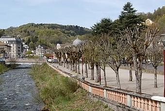 Abritée des mauvais vents par le puy Gros et la Banne d’Ordanche ( 1513 m ), La Bourboule est une station thermale, à la très jeune clientèle, que rafraîchit la Dordogne naissante et son petit affluent, le Vendeix. Elle cultive un côté pouponnière avec ses quais peinturlurés aux couleurs de barboteuse, sa lumineuse piscine de verre, sa " maison des enfants ", son train miniature, son parc Fenestre où les petits malades sont rois.