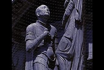 Cappello, revêtu de sa prestigieuse parure militaire, est légèrement incliné sur son prie-dieu, un genou à terre, le corps sans vie.