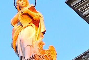 Je quitte le Chiodo vers les 16h15 pour me rendre aux fondamente Nuove. Après Santa Caterina, j’aime alors éluder la place dei Gesuiti pour le petit campo surélevé delle Candele. Après, c’est tout droit, calle dei Consorti. A la trouée dei Crociferi, le soleil m’offre un étonnant spectacle : la Vierge des Gesuiti est en flamme, saint Jean ruisselle d’or liquide. Un apôtre aux traits bien féminins…