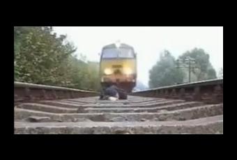 Pari ou simple besoin de sensations fortes ? Un homme s’est couché à plat ventre sur des rails avec une caméra pour filmé le train qui lui passe dessus.