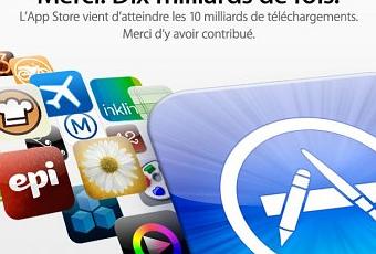Le cap des 10 milliards d'application téléchargées à été atteint par le géant Apple. Une anglaise, Gail Davis a téléchargé la 10 milliardième application et qui a donc vu son compte créditer de 10.000$.