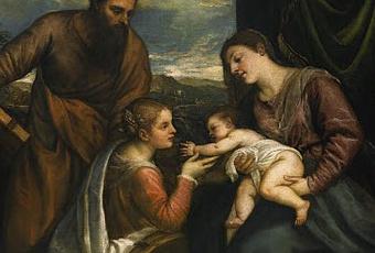 Titian's Sacra Conversazione: The Madonna and Child with Saints Luke and Catherine of Alexandria. ***Sotheby's New YorkJeudi 27 janvier 2011Vente aux enchères: "Important Old Master Paintings & Sculpture"dont Une œuvre magistrale de Titien (1485-1576), estimée entre $ 15 millions et $ 20 millions. Vidéo Sotheby's Restée à l’abri des regards depuis une trentaine d’année, cette "Conversation sacrée : Madone et Enfant avec saint Luc et sainte Catherine d’Alexandrie" est une des œuvres majeures du maître vénitien. Peint vers 1560, ce tableau témoigne de la maturité du peintre, par la profondeur des couleurs, par sa composition et par le mouvement des personnages. Jésus y est montré comme un enfant bien vivant, qui s’échappe des bras de la Vierge pour attraper sainte Catherine.