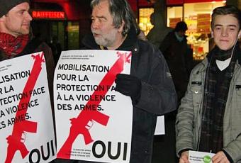 L’annonce a été faite durant le rassemblement du samedi 22 janvier sur la Place Neuve et ensuite relayée sur Facebook. 212 personnes ont annoncé leur participation dont quelques têtes d’affiche comme Boris Drahusak (absent) à cette Smartmob devant le Starbucks de la rue du Mont-Blanc, ce soir entre 18h00 et 18h05. En réalité, cette action qui s’est déroulée simultanément dans plusieurs villes en Suisse n’a rassemblé à Genève qu’une vingtaine de personnes. Un petit groupe hétéroclite composé de jeunes et de moins jeunes ont joué les morts devant des passants surpris de voir des corps couchés à même le trottoir, immobiles durant cinq minutes. Distribution de tracts et discussions avec les passants pour les sensibiliser face au danger d’une arme à feu dans la maison et les inciter à voter OUI à l’initiative du 13 février soutenue par la gauche, tel est le but de cette smartmob, la deuxième après celle de la Place du Molard du 15 janvier. Public pas trop réceptif à une heure de pointe et surtout sur le chemin des pendulaires pressés de rentrer chez eux!