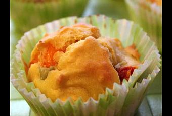 En principe, le cornbread se cuit comme un gâteau, dans un moule rond, et se doit d’être moelleux à souhait. Moi, j’ai voulu tenter la version muffin salé, moins moelleux mais aussi bon, avec des morceaux de piments doux grecs (car impossible de trouver des jalapeños dans mon quartier !), de cheddar et de tomate. En attendant la vraie recette du cornbread, voici mes petits muffins…