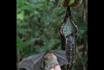 Tout récemment, Dr. Ulmar Grafe et son équipe scientifique ont démontré qu’une variété de Nepenthes, à Bornéo, tirait un bénéfice des excréments de chauve-souris, qui font des fameuses urnes-pièges un lieu de repos parfait. Nepenthes rafflesiana var. elongata, tel est son nom, se développe dans des sols très pauvres, comme il est de coutume avec les plantes carnivores. Problème : ses pièges capturent beaucoup moins d’insectes que les autres Nepenthes. Pour survivre, sa relation étroite avec les chauve-souris est donc fondamentale : les excréments, digérés au fond des urnes, fournissent tout l’azote nécessaire ! De son côté, le fameux mammifère nocturne ne fait pas cela par hasard. Des parasites suceurs de sang prolifèrent dans ses fientes ; les urnes de Nepenthes font alors office de véritables toilettes propres !