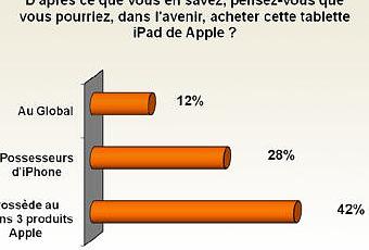 L’institut GFK a publié le résultat d’un sondage qui dévoile une notoriété de la gamme iPad d’un pourcentage supérieure à 75%. « Sans surprise, le critère le plus impactant sur cette notoriété est la possession d’au moins un appareil Apple au foyer. Les taux de notoriété vont ainsi jusqu’à 94% sur les répondants ayant trois appareils Apple au foyer, mais restent très forts sur des strates de la société à priori plus éloignées du produit, comme les séniors ou les foyers ruraux ». confirme Alexis Helcmanocki, Directeur du Pôle Telecom, IT & Consumer Electronics chez GfK Custom Research France.